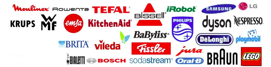 SEB Group, Philips, Bosch, KitchenAid, DeLonghi, Braun, Siemens, Dyson, Vorwerk, Babyliss, Remington, and many more.